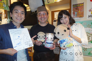 収録の時にアナウンサーの小野澤玲菜さんと伊藤薫平さんが紹介してくれたのですが、小野澤さんが店に入った瞬間 店内の(熱海のゆるキャラ)あつおクンに反応してしまいあつおクン大好きの親方と意気投合してしまいました。
