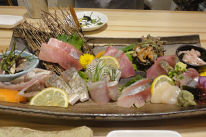 次のお店は駅周辺にできた 最近移転したばかりの「のへそ」に行きましたが、オープンしたばかりなのと昼ということもありランチしかありませんでした。「でも、飲める?」と聞けば「飲めます!」というので刺身の盛合せと日本酒で試合再開です。静かな店内で(一人増えて四人で)賑やかに飲んでしまいました。
