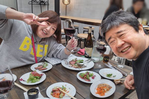 紹介されたお店に入りましたが、そこは、いつも私が行くような居酒屋さんではないので、ワインから始めて泡(=シャンパン)を飲んで、ワイン飲んで泡飲んで・・・これを繰り返していたら試合開始(=飲み始め)は15時だったけど、陽が落ちる頃には私も落ちそうになり・・・(笑)