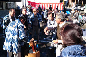 1/7 研屋町の餅つき大会が、かさいの隣の静清信用金庫の駐車場で行われます。