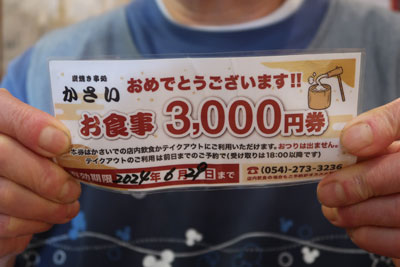商品は町内の「貫徹家」さんや「かさい」の食事券など町内で使える商品券が景品でした。
