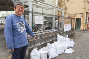 近隣を清掃した後は銀行の駐車場がメインになります。鉄板を上げて鉄板下の砂、ゴミを取り除き終了です。