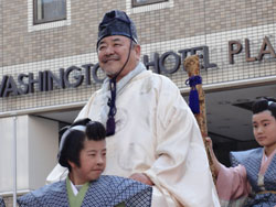あれっ、ここは通らないのかな?と思ったら間もなく鼓笛隊が現れてその後ろに中尾彬さんが登場。