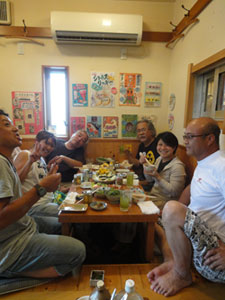※釣って帰ってきた大物は刺身にして2次会(下の写真)で召し上がっていただき盛り上がりました。