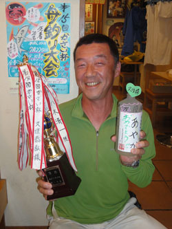 優勝者は22匹。去年は100匹を超えていましたからそれと比べると少し寂しいものになりましたが、入れ食いの時は魚の大きさが今回の1/3くらいの小物が中心だったので、今回の方が釣り好きの方からすれば釣り味があって面白いのかもしれません。(上の写真は優勝者)