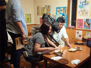撮影の打ち合わせでは「※吉田類的なものがあったらいいね」と言われたので盛り上げ隊のサクラを常連と同級生を招いて吉田類的な"場の雰囲気(=お客様へのインタビュー風景)"を作りました。