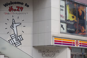呉服町スクランブルの「目のスクビル(=目のまえスクランブルビルディング)」の壁に絵が描かれているのを見たことがあると思いますが、この絵を描いたのが「しりあがり寿」さんです。