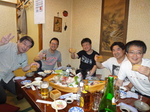 せっかく来ていただいたので一席設けようということでいつも行っている横田町の"鬼の家(おにのや)"さんに宴会料理をお願いして仲間を呼んで飲みました。