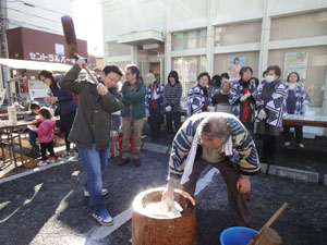 今年はお客様に声をかけて餅つきを手伝っていただきました。
