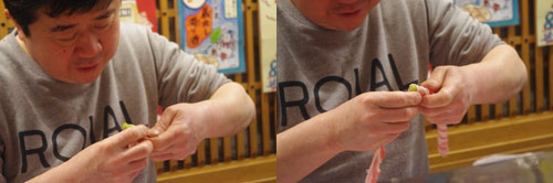 八十四串目:ホワイトかさい君とブラックかさい君。