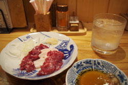 お客様も馬刺しの甘い醤油にも慣れて来たので「醤油だけ舐めないでちょうだい!」とお願いしているくらいです。(笑)