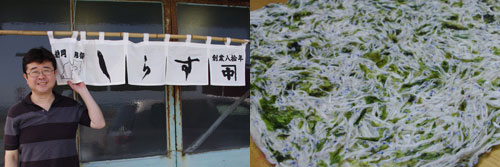 これは用宗のカネナカ商店のオリジナル商品で青海苔を混ぜたたたみぼしです。