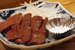 かさいでは「馬刺し」「馬レバー」を用意しています。相性はバッチリです。