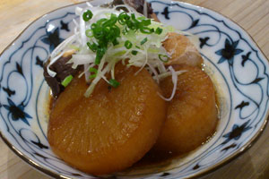 今回は大根がすごく美味しいので”大根料理”を合わせましょう。かさいの大根料理は、牛スジ大根、ぶり大根、なめこおろし、めんたいこおろしを用意しています。 ブリ大根はブリの脂に大根が勝ってしまうくらい大根が美味しいし、なめこおろし、めんたいこおろしは大根が脇役なのに大根がウマイ! 今回は珍しく一品ではなく『大根料理』。 本当に旨い大根と真澄を合わせましょう!
