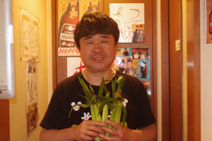 この「ヤングコーン炭火焼」だけはオーナーシェフ自ら客席で仕上げをします。