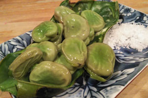 鹿児島から直送のそら豆が大きくなってきたので、ぜひ炭火で焼いて薄皮の甘みを感じて召し上がっていただくと焼酎に合うと思います。