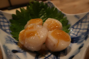 ホタテの貝柱を"このわた"で和えたものですが、日本酒好きの方には絶対にウケると思います。