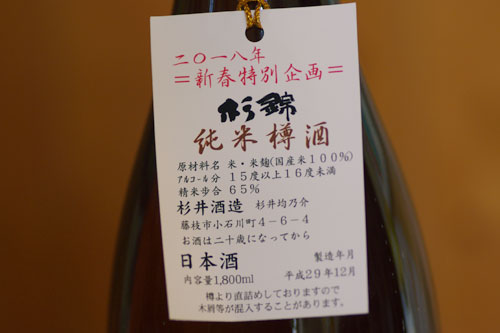 この杉錦の純米樽酒は一番美味しくつかったタイミングで酒を瓶詰めされています。