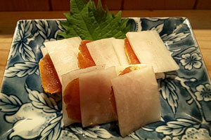 これにはぜひ、自家製カラスミを合わせましょう。