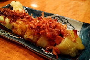 これを炭火で焼いて皮をむき、ウチの自慢のオカカを振りかけて美味しい醤油を落として召し上がってください。