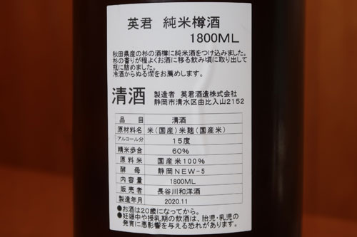 秋田県産の杉井の樽酒に純米酒をつけ込みました。