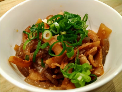 これには「ピリ辛支那竹とコンニャク炒め煮」を合わせましょう。