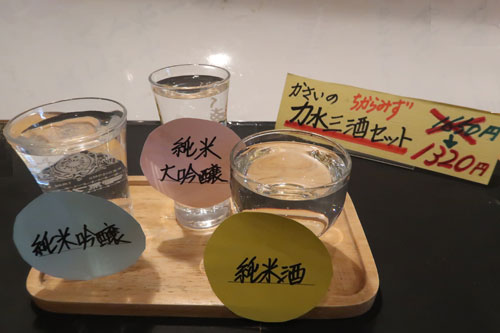 純米大吟醸、純米吟醸、純米酒の3種をミニグラスで飲み比べが出来ます。