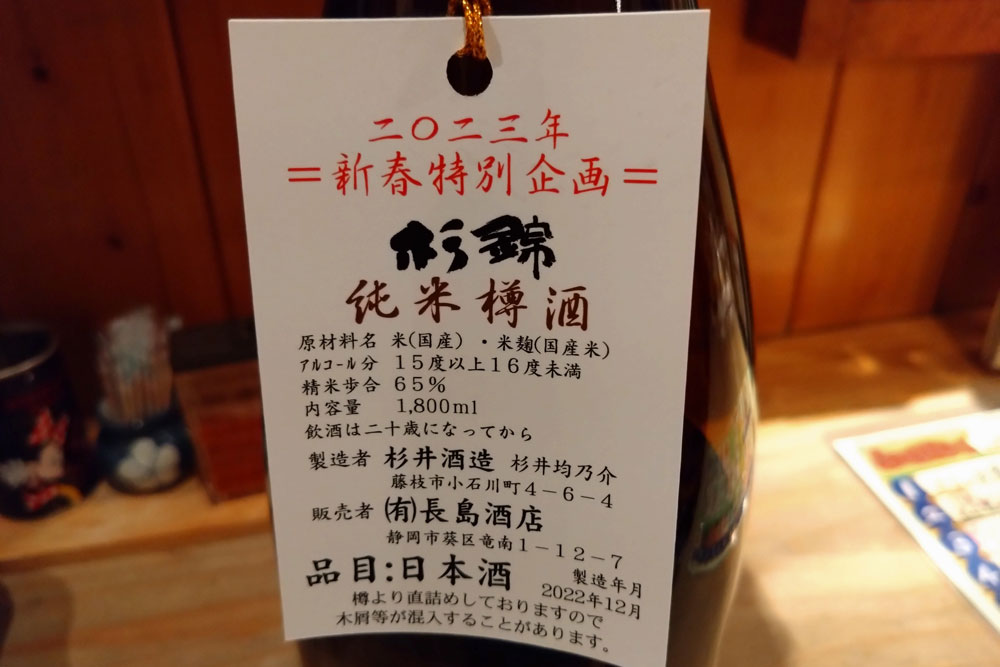 毎年楽しみにしているお客様が多いお酒で杉の香りがポァ~ンとする杉錦の樽酒。