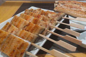 これには新しい仕入れ先から肉厚のウナギを仕入れることができました。うなぎだから「かば焼き」ではどこでも食べられるので白醤油の旨味をウナギに移して炭で焼くから皮がパリッとしているのでこれを楽しんでいただきたいと思い白醤油焼きにしました。