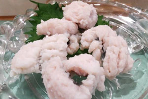 骨切りしたハモを、湯引きして、自家製の梅肉を付けて召し上がって下さい。
