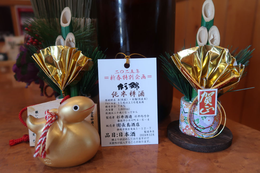 毎年、正月の縁起物の一つとして藤枝の杉錦さんの樽酒をご用意ししています。